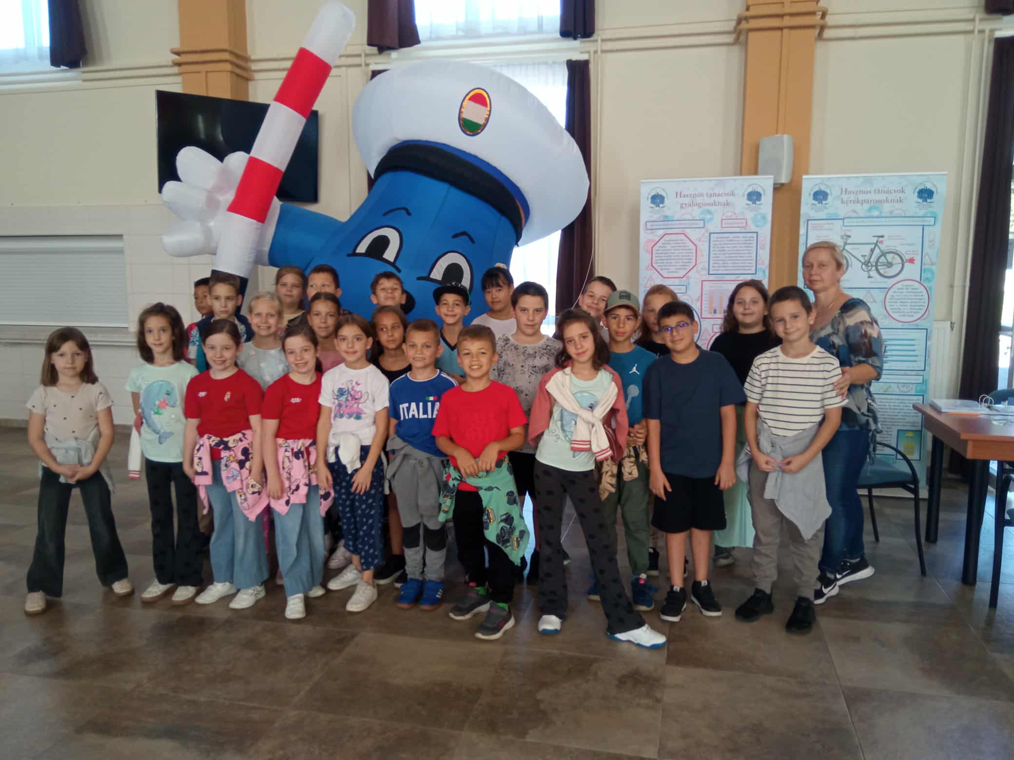 A tanulók számos ügyességi feladat mellett közlekedési ismeretekre is szert tettek. Apró ajándékokkal, jókedvűen tértünk vissza az iskolába.
