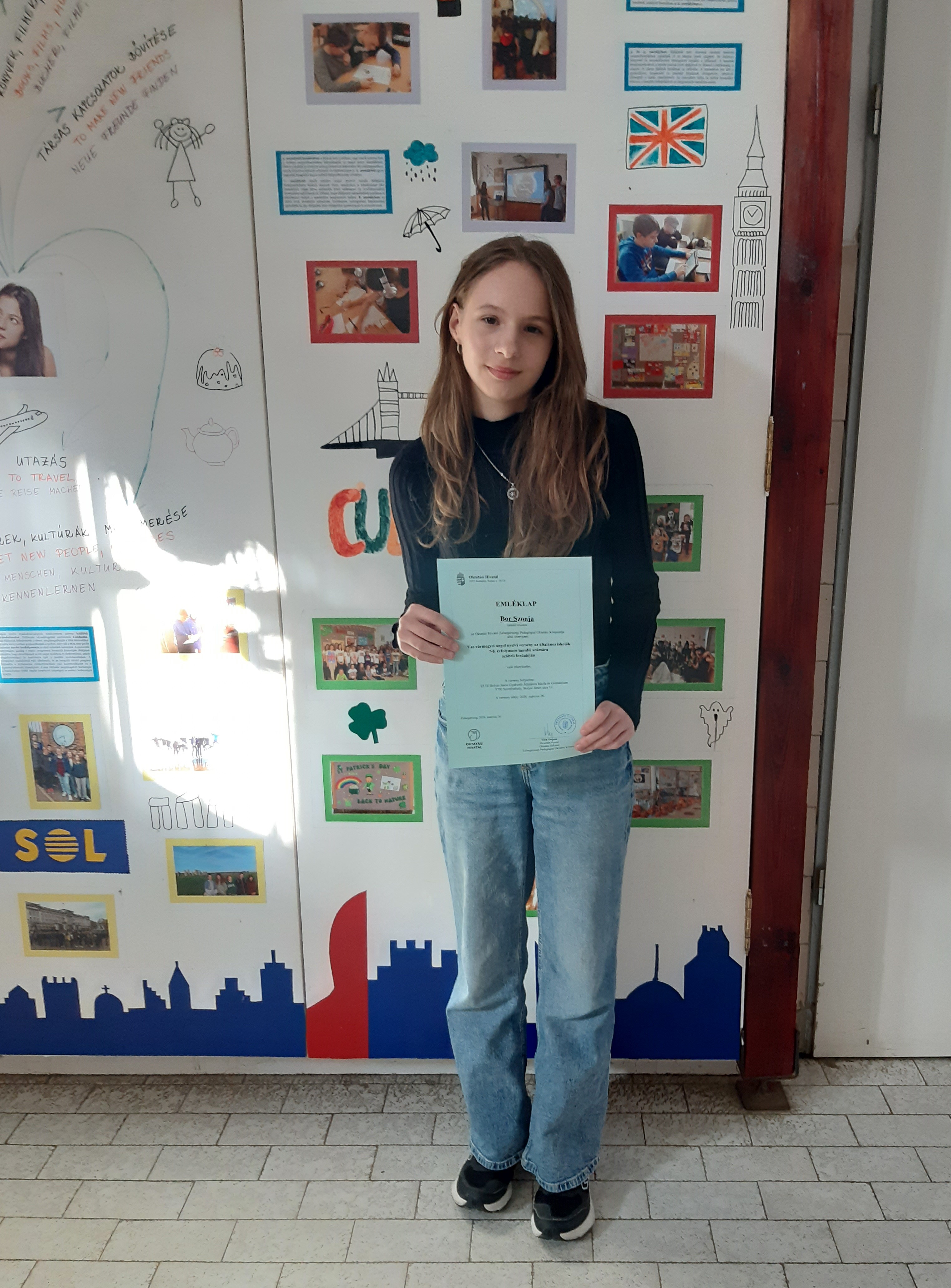 Iskolánk 8.b osztályos tanulója, Bor Szonja, kiemelkedő eredményt ért el